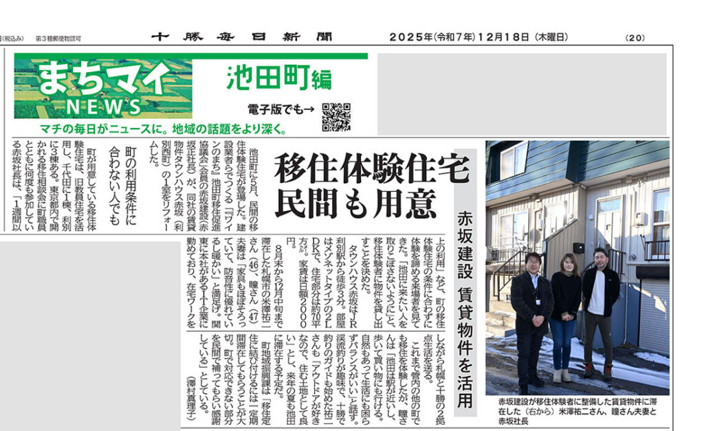 赤坂建設は十勝・池田町で移住体験していただくための短期移住体験住宅と長期滞在住宅をご用意しています。