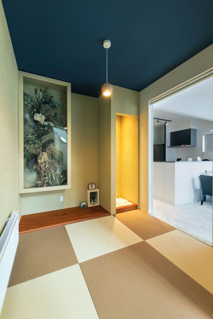 LDK奥の和室は、結婚式でご主人が奥様にプレゼントしたというお花が飾られモダンな雰囲気。