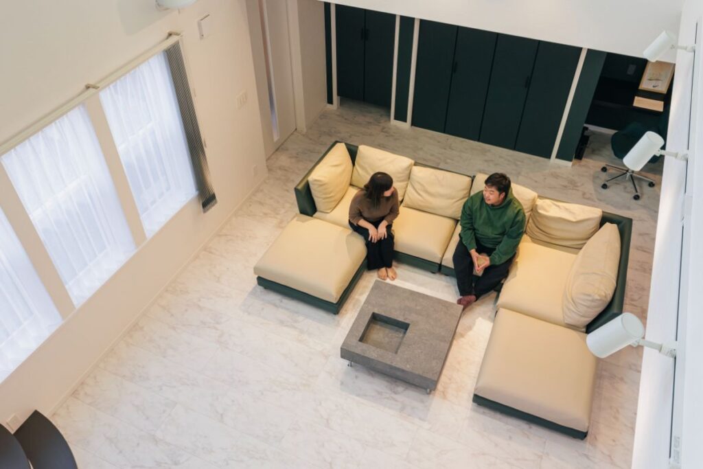 多忙な日々の合間に友人家族と食事や会話を分かち合うのが楽しみというご夫妻。LDKは面積に余裕をもたせ、リビング・ダイニング・和室と複数の空間が緩やかにつながる形にデザインしました。